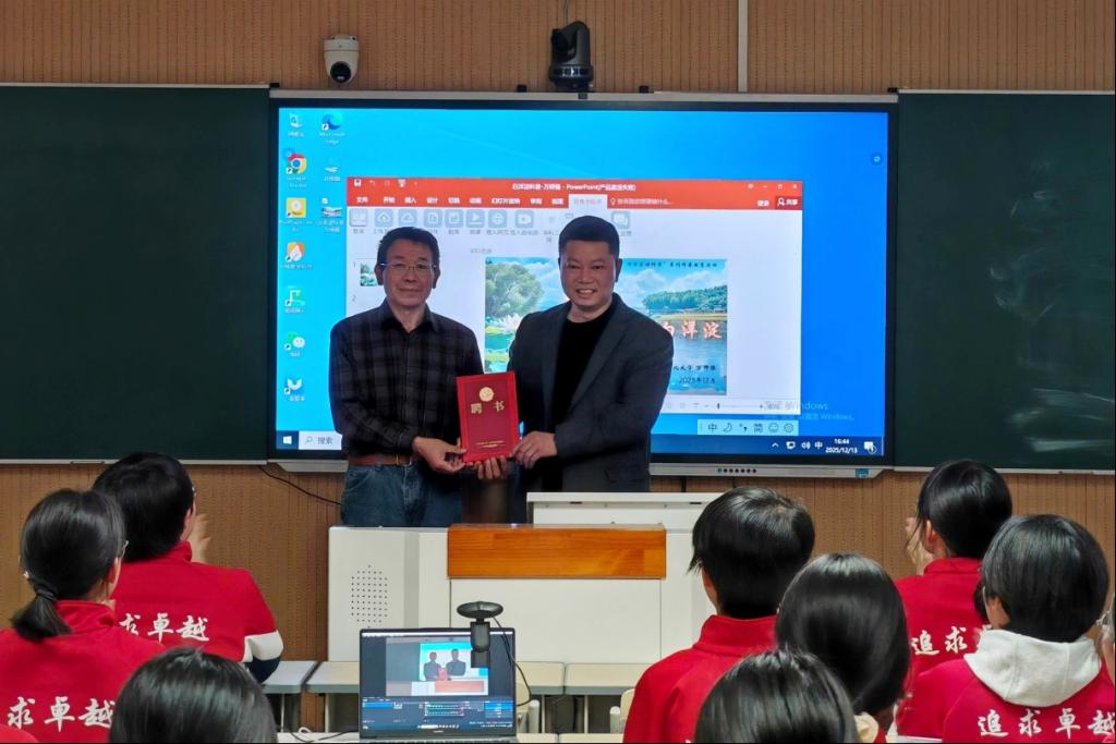 讲座后,衡水市第十七中学举行了庄重的聘任仪式,正式聘请万师强教授为学校科学副校长。校长在致辞中表示,学校将以此次合作为契机,借助河北大学优势教育资源,搭建常态化科普与研学实践平台,全方位培育学生的科学素养与生态保护意识。