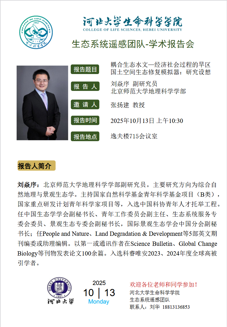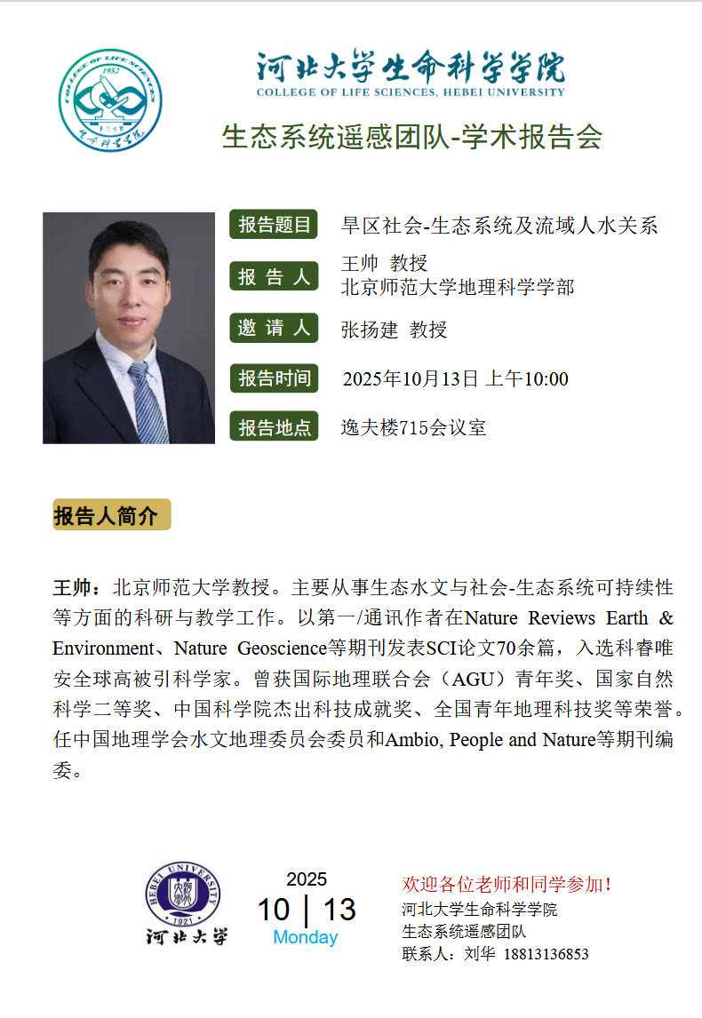 报告人:王帅教授、刘焱序副研究员 北京师范大学