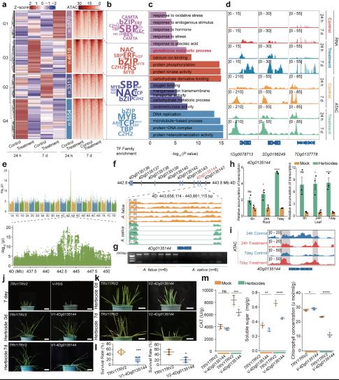 图3. 多组学联合分析及4Dg0135144 调控除草剂抗性的功能验证