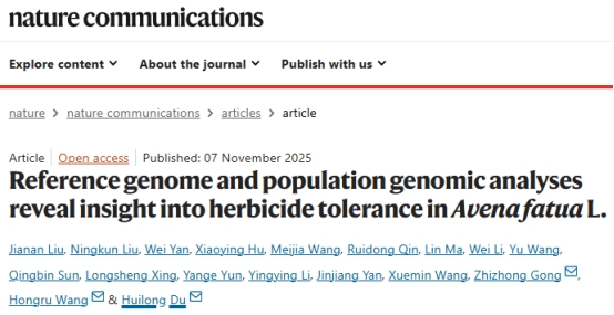 近日,河北大学杜会龙/巩志忠教授团队与中国农业科学院深圳农业基因组研究所汪鸿儒研究员团队合作,在国际知名期刊Nature Communications上在线发表了题为Reference genome and population genomic analyses reveal insight into herbicide tolerance in Avena fatua L. 的研究论文。该研究结合野燕麦基因组学、群体遗传学和多组学等联合分析,1) 系统地解析了野燕麦与栽培燕麦的遗传关系与演化历史;2) 鉴定了野燕麦与栽培燕麦高度分化的基因组区域,证明了这些区域涵盖了大量与重金属、盐碱、干旱、高温、病虫害及除草剂等环境适应性和胁迫抗性相关的基因;3) 挖掘到了参与野燕麦除草剂抗性的重要候选locus,并通过转基因等实验证明了4Dg0135144基因在燕麦除草剂抗性方面的重要作用。该研究不仅为解析野燕麦环境适应性演化的遗传学基础提供了关键基因资源,同时也为培育高产、耐逆且具有广谱适应性的栽培燕麦新品种提供了重要指导。